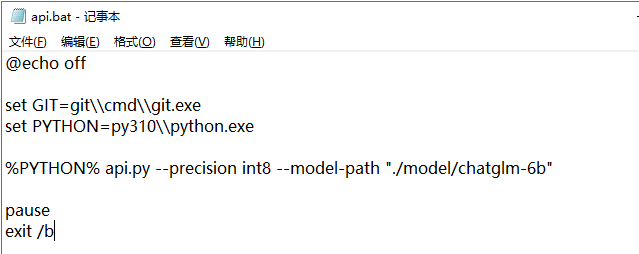 写了一个.bat文件,指定一下python路径,和模型路径。